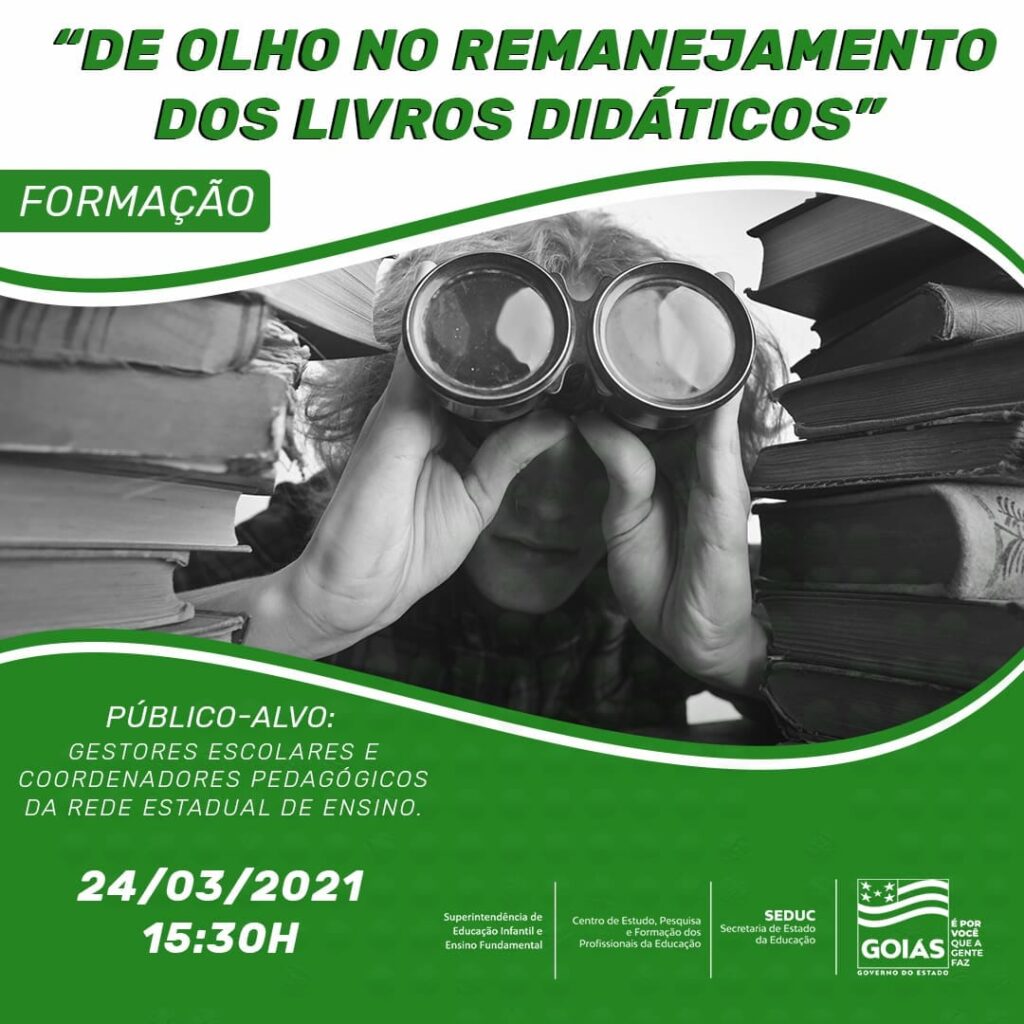 Evento será realizado virtualmente no dia 24 de março. A formação é para profissionais, terá duração de uma hora, e o objetivo é instruir gestores e coordenadores pedagógicos sobre a entrega dos livros didáticos aos estudantes
