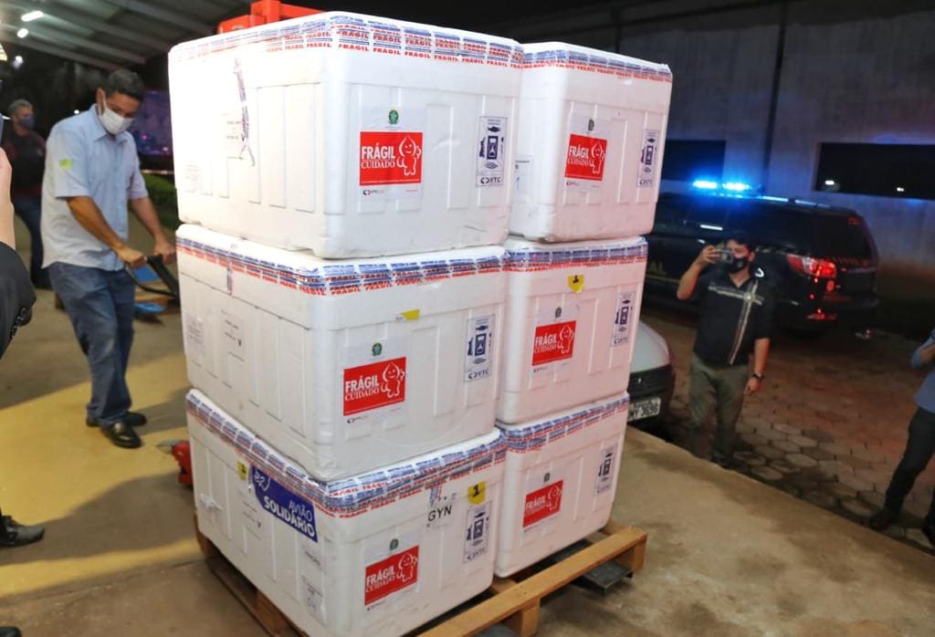 Novo lote chegou em voo comercial no Aeroporto Internacional de Goiânia na madrugada. Distribuição desta remessa da vacina começa a ser feita a partir das 13h desta quarta-feira (17), e é suficiente para imunizar mais de 67 mil pessoas