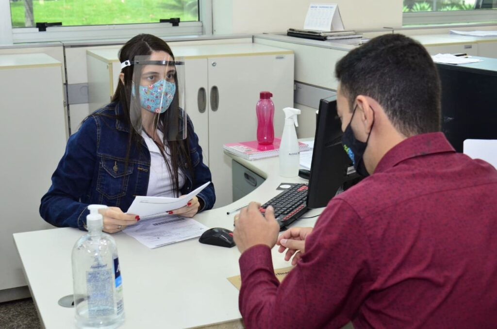 As máscaras de acrílico oferecem mais conforto e ampliam a segurança dos atendentes e usuários do Vapt Vupt contra a Covid-19. As unidades disponibilizam ainda álcool em gel, sinalização de distanciamento e controle do fluxo de pessoas no interior das agências