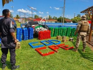 Os ilícitos foram interceptados no momento em que eram transportados por dois indivíduos, em uma camionete. A apreensão trouxe prejuízo estimado em R$ 2,1 milhões ao crime organizado