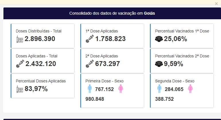 Goiás atinge 25,06% da população vacinada com 1ª dose contra Covid-19