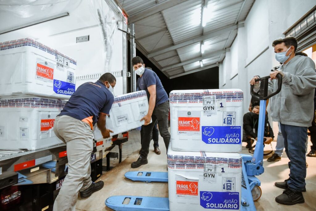 Remessa com 62.400 doses do imunizante CoronaVac e 37.400 unidades da AstraZeneca chegam a Goiás no começo da madrugada desta terça-feira (20/07). Com novo lote, Estado avança na cobertura vacinal, e se aproxima da expectativa do governador Ronaldo Caiado de que goianos com mais de 18 anos de idade estejam imunizados até setembro
