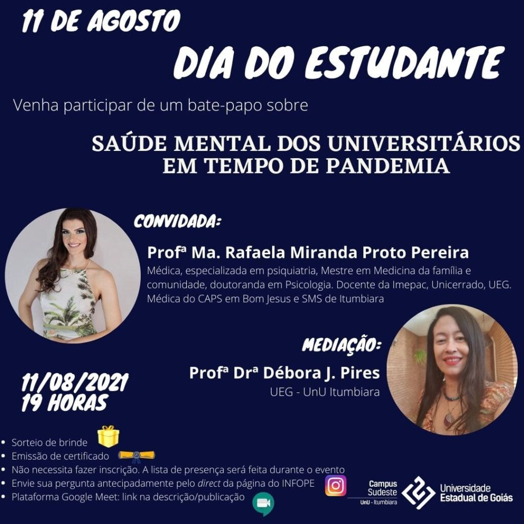 Bate-papo celebra o dia estudante, comemorado em 11 de agosto. Evento será transmitido pelo Google Meet