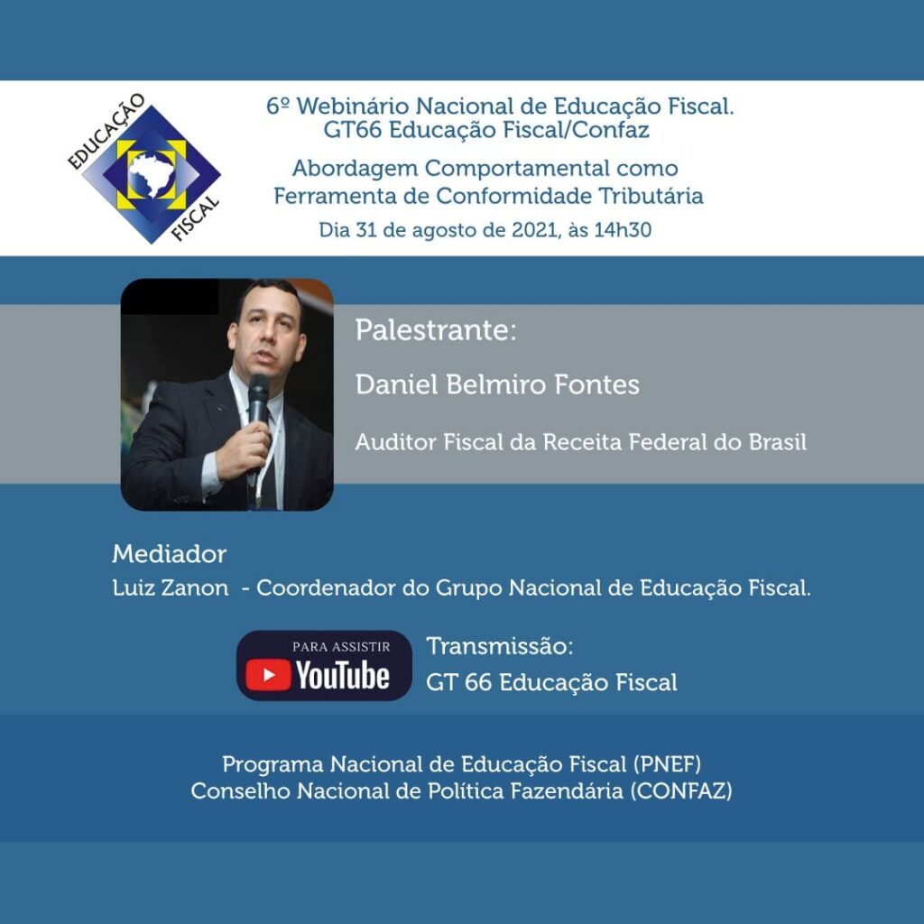 O webinário, que será realizado nesta terça-feira, 31 de agosto, a partir das 14h30, tem como palestrante Daniel Belmiro Fontes, auditor fiscal da Receita Federal