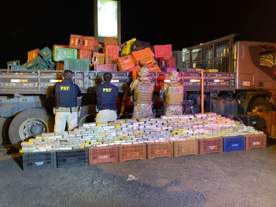 A droga era transportada no fundo falso de um caminhão e havia saído do estado do Mato Grosso. O veículo foi abordado pelas forças de segurança na BR-070, na saída para Santa Fé de Goiás