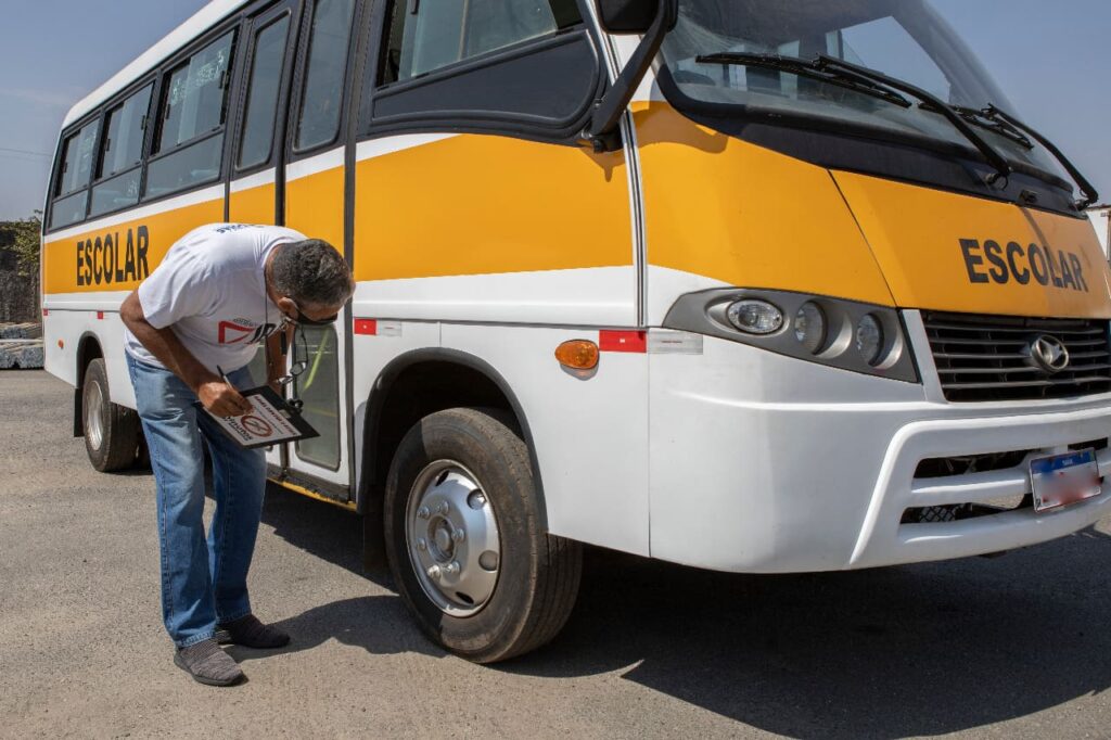 Checagem das condições do veículo e da documentação do transporte escolar público é realizada com o objetivo prevenir acidentes. A vistoria realizada semestralmente havia sido suspensa, devido à pandemia, e retornou em agosto junto com as aulas presenciais em grande parte do Estado