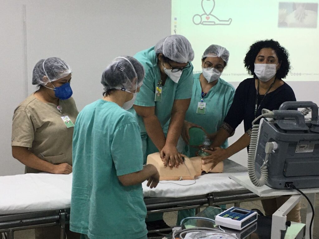 Equipe da unidade participa de ações de suporte básico de vida. Enfermeiros e enfermeiras, em dois horários diferentes, participam do curso teórico e prático de manobras, equipamentos e medicamentos utilizados na reanimação e salvamento de pacientes de acordo com as normas estabelecidas para ressuscitação cardiopulmonar (RCP)