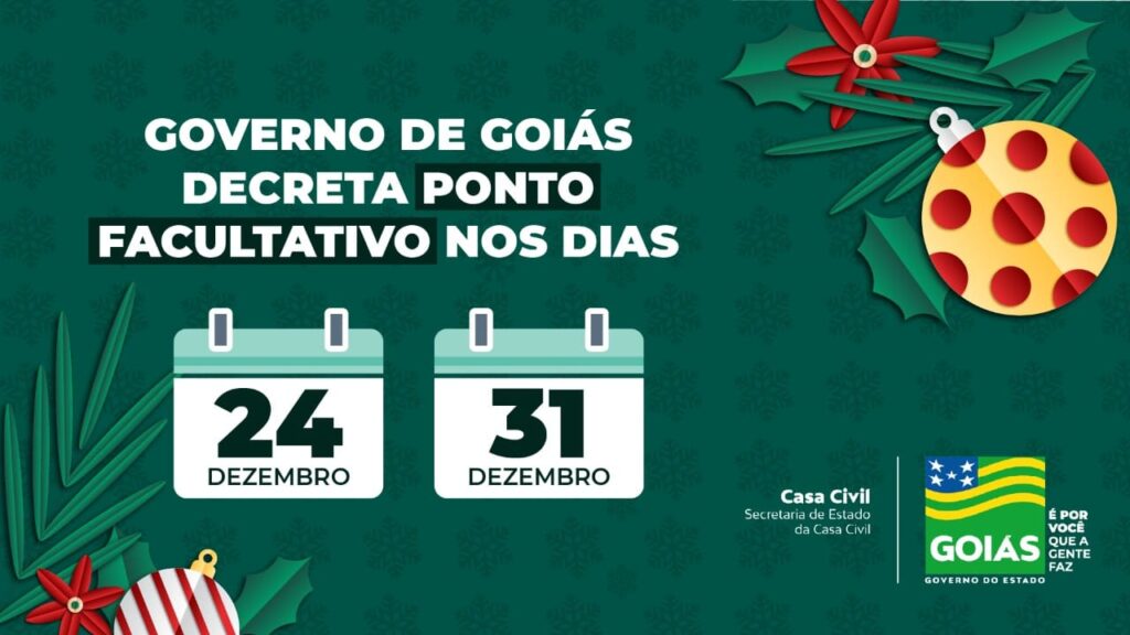 Dias 24 e 31 de dezembro serão ponto facultativo no Estado