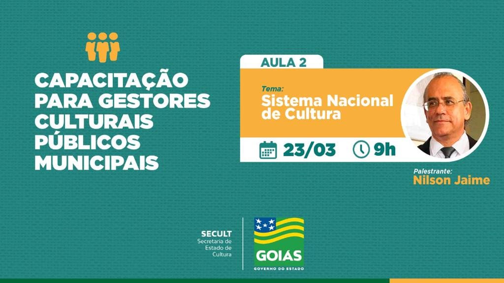 Treinamento faz parte do programa Retomada Cultural e visa a ajudar os municípios no apoio à implantação e implementação de políticas culturais. As aulas terão 20 horas distribuídas no período de cinco meses, ministradas via plataforma on-line, com transmissão pelo Youtube da Secult Goiás