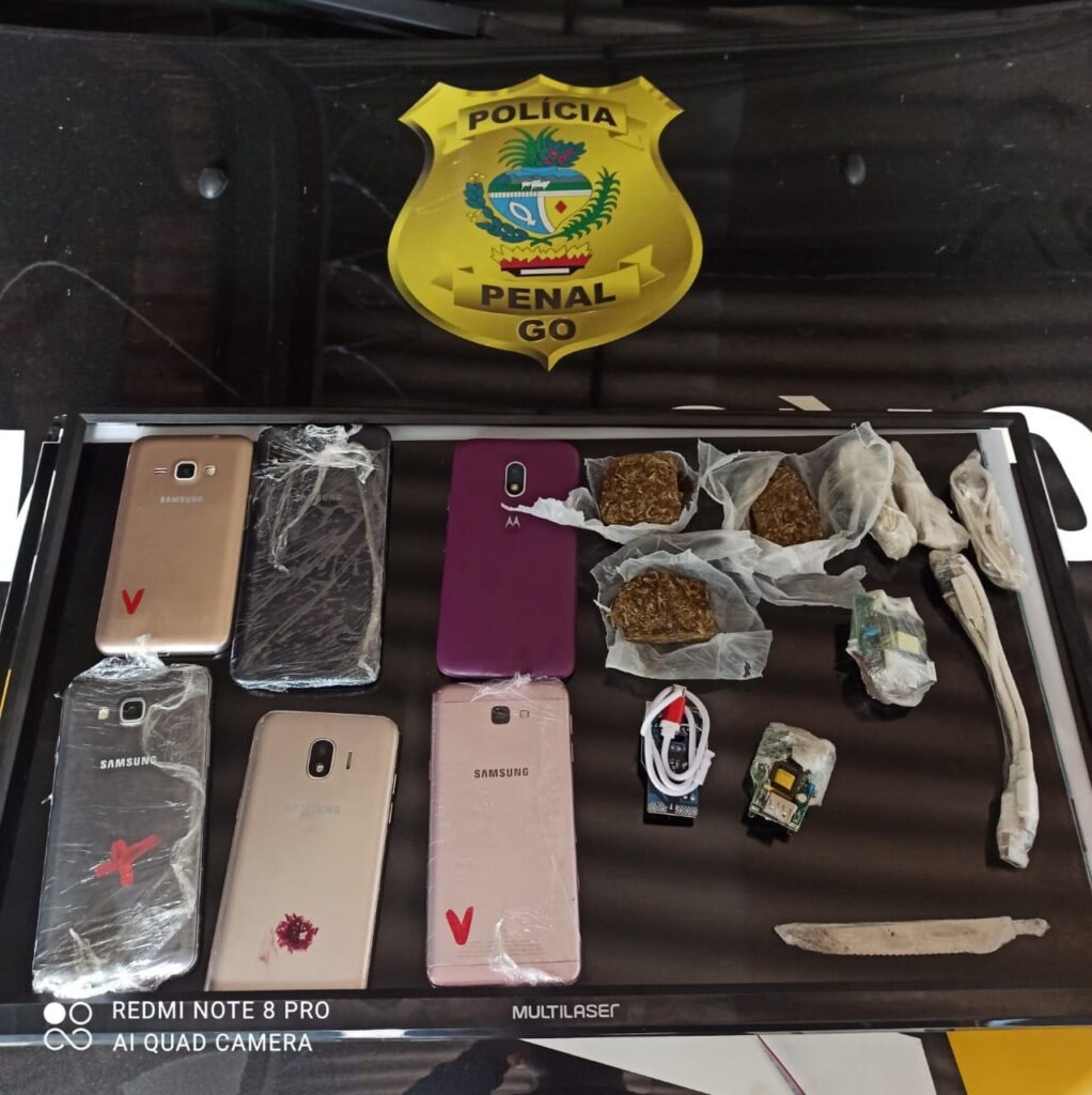 Foram encontrados diversos itens eletrônicos, entre eles seis celulares, três porções de droga e uma faca. Intercepção ocorreu durante procedimento de revista, nesta quinta-feira (24)