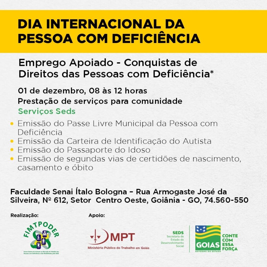 Evento oferece vagas de emprego; emissão de segunda via de certidões de nascimento, casamento e óbito; Passaporte do Idoso; Passe Livre da Pessoa com Deficiência e Carteira de Identificação do Autista