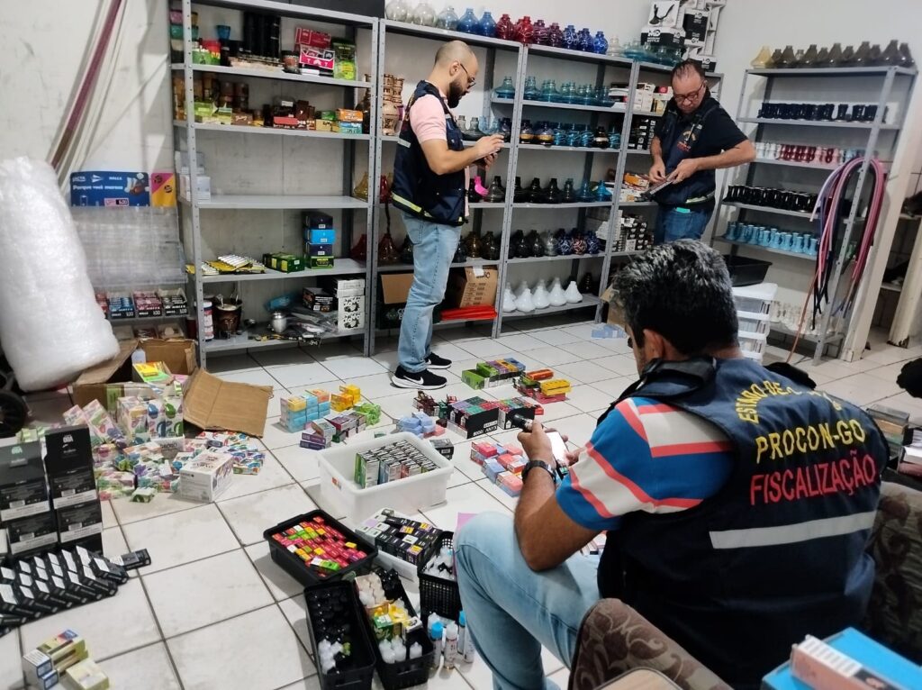Seguindo determinação da Anvisa, Procon Goiás apreende produtos como vapers e pods. Produtos não têm autorização para serem comercializados no Brasil