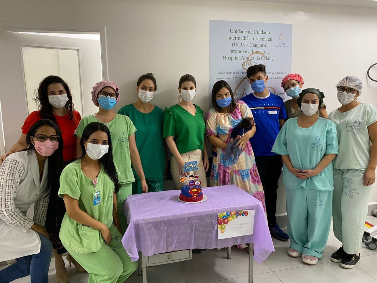 Da cidade de Goianésia, Gabriely Lande e Murilo Sousa, pais do Nicollas, fizeram questão de levar uma roupinha e um bolo. Nicollas, nasceu há um mês, com 32 semanas, devido à falta de oxigenação. Desde então está se recuperando na UCIN. Pelo fato dele respirar espontaneamente, puderam comemorar sua vida, em outro espaço do hospital. Teve até um bolo temático. “Muito feliz, uma sensação incrível”, afirmou Murilo. “É maravilhoso ver sua melhora a cada dia e poder celebrar isso. Quando vou embora, vou tranquila, pois sei que ele está em boas mãos. Me sinto confortável com essa equipe”, afirmou Gabriely, emocionada.