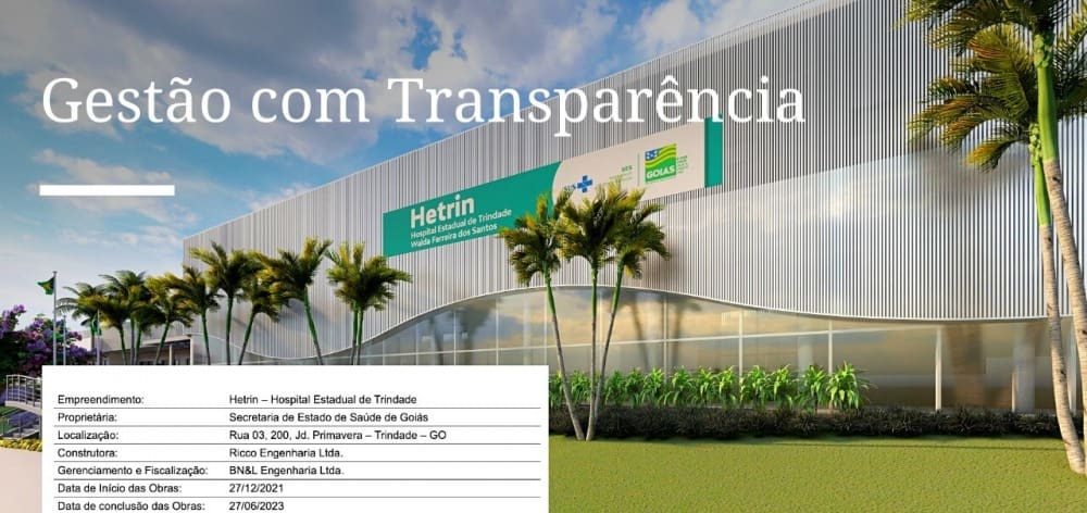 Para que a população possa acompanhar, em tempo real, todo o desenvolvimento da obra e seus custos, a unidade do Governo de Goiás em Trindade lançou, nesta semana, a plataforma eletrônica Transparência Total.
