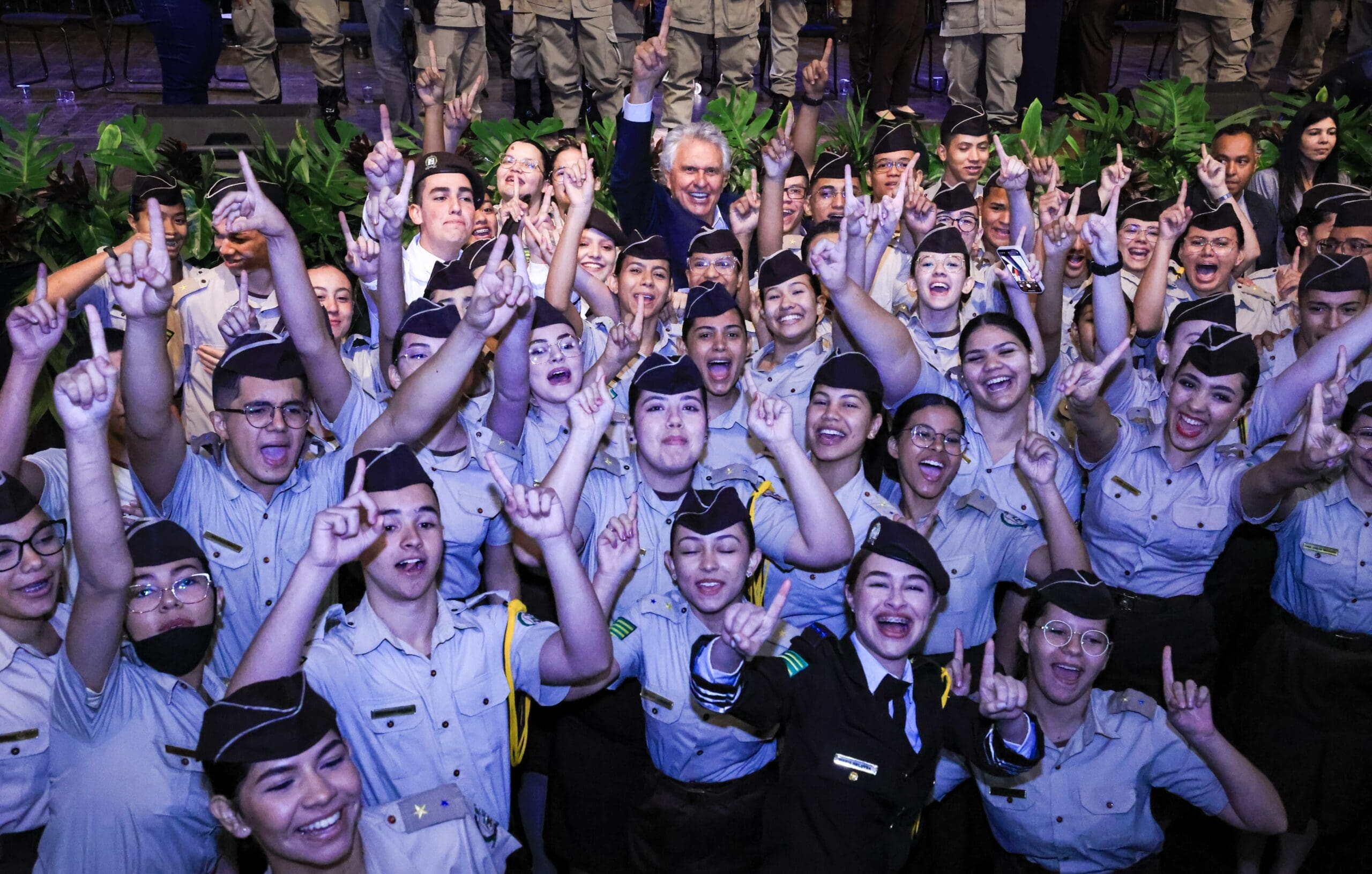 Governador Ronaldo Caiado entrega cartões do programa Bolsa Uniforme a alunos dos colégios militares: “Goiás está dando condições para que sejam os melhores do país” (Foto: André Saddi)