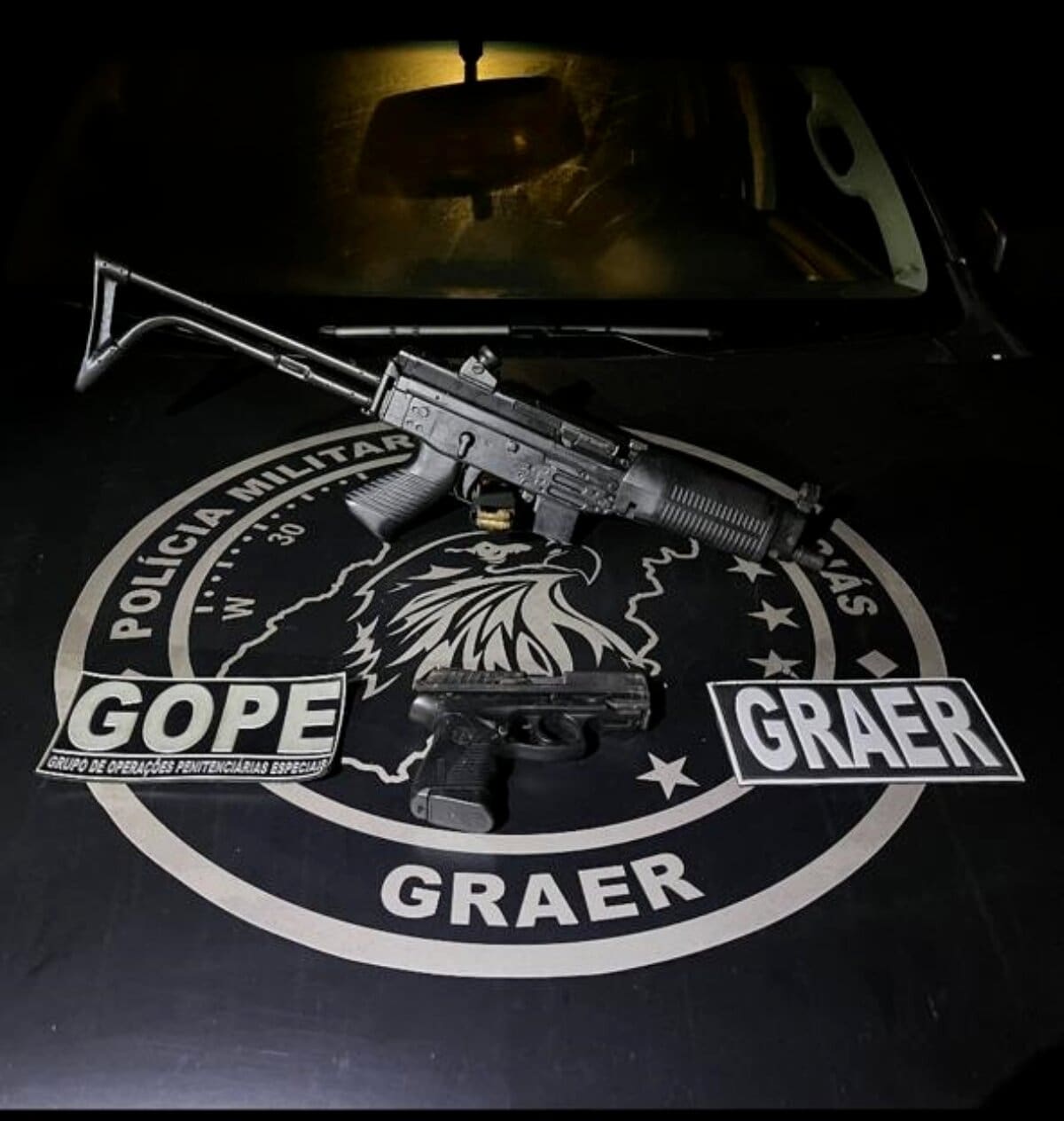 Ação conjunta entre as polícias Penal, por meio do Grupamento de Operações Penitenciárias Especiais (Gope), e a Militar (PMGO) resultou na apreensão de duas armas de fogo, em uma rodovia do interior do Estado, nessa sexta-feira (11). Um pacote lacrado com uma pistola 9 mm e uma submetralhadora foi apreendido com um indivíduo, que seria o responsável por receber o material deixado por uma transportadora. O fato segue sendo investigado.