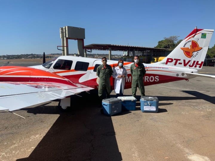 O Corpo de Bombeiros Militar do Estado de Goiás, por meio do Centro de Operações Aéreas, e em parceria com a Secretaria Estadual de Saúde, desde maio de 2021, já percorreu pelos ares quase 20 mil quilômetros, em 15 missões destinadas à distribuição de vacinas contra o coronavírus.