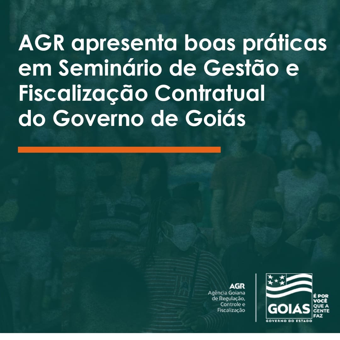 A Agência Goiana de Regulação, Controle e Fiscalização de Serviços Públicos (AGR) participa, na próxima quinta-feira (12/08), de mesa-redonda sobre boas práticas no 1º Seminário de Gestão e Fiscalização Contratual, do Governo de Goiás, relatando experiências de sucesso na gestão de contratos feitos pela Agência e que resultaram em economia e segurança. O evento, nos dias 11 e 12, é coordenado pela Controladoria-Geral do Estado (CGE) e pela Secretaria de Administração (Sead), e será transmitido ao vivo pelo canal da CGE no YouTube (youtube.com/cgegoias).