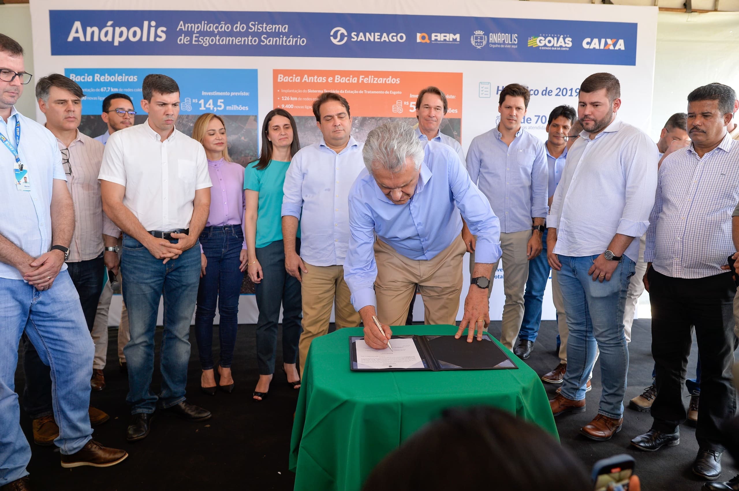 No evento, que contou ainda com a presença do vice-governador Daniel Vilela, foi também foi assinada ordem de serviço para obras da bacia Reboleiras, com construção de 67,7 quilômetros de redes coletoras de esgoto e 4,3 mil novas ligações domiciliares.