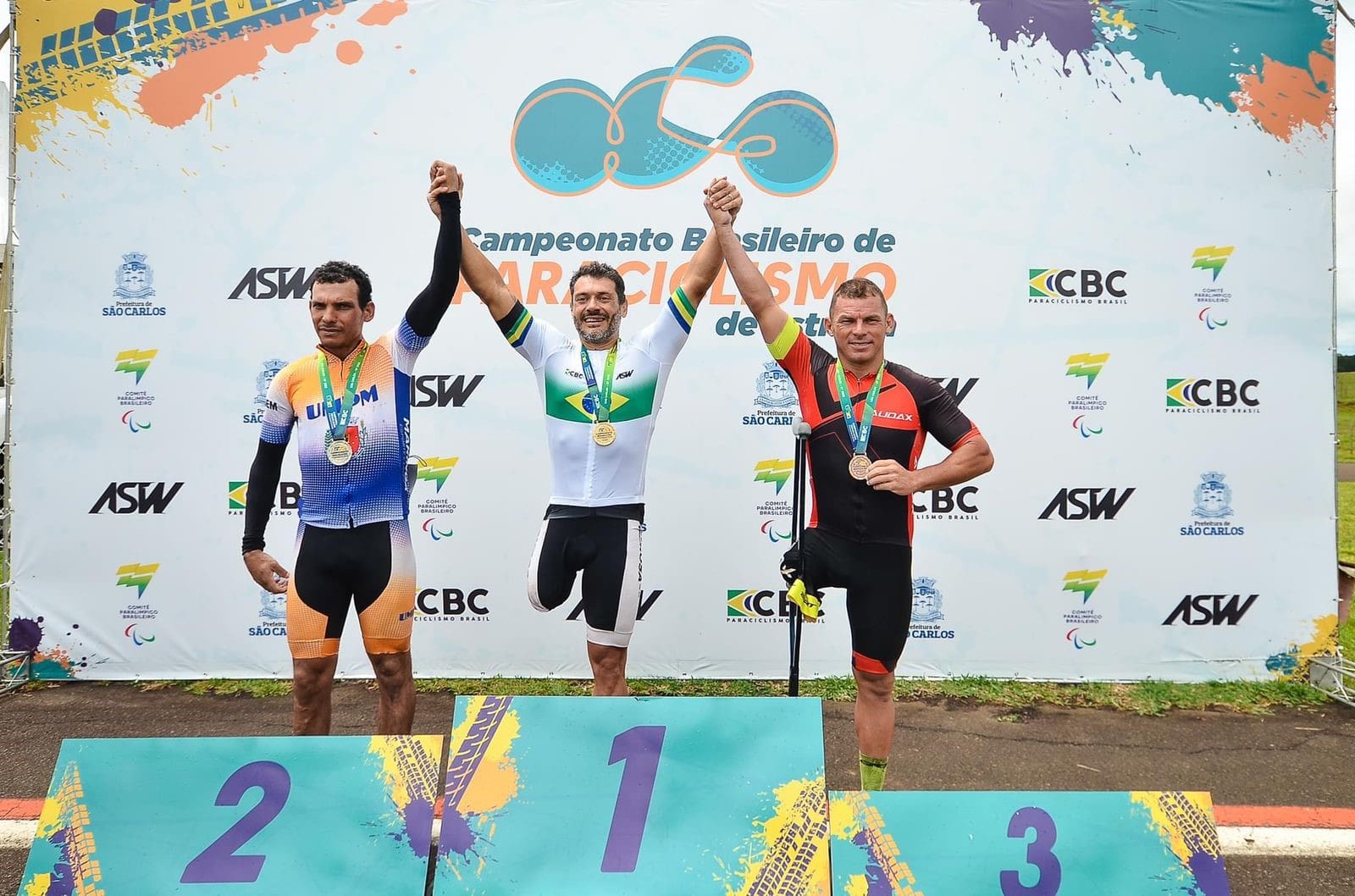 Na prova de resistência, cheguei a ter uma queda no início, por conta da chuva, mas consegui me recuperar e buscar o pelotão da minha classe e vencer”, detalha o paraciclista, sobre a competição de 66 quilômetros da Classe C2.