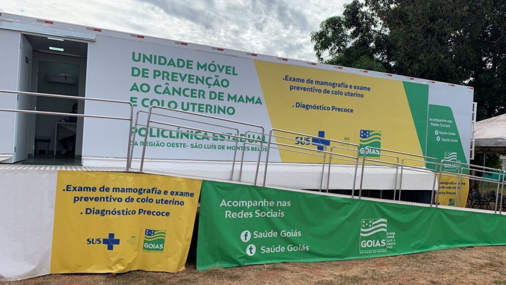Unidade móvel, é um serviço itinerante de atenção à saúde da mulher que realiza exames de mamografia e Papanicolau com uma estrutura moderna e capaz de beneficiar pacientes em todo estado de Goiás. Carreta fica em Aragarças até dia 18 de junho