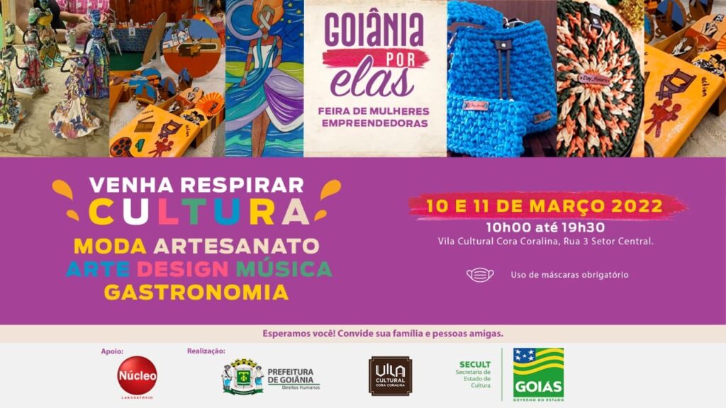 Vila Cultural Cora Coralina, unidade da Secult Goiás, recebe a Feira Goiânia por Elas, nesta quinta e sexta-feira (10 e 11/3), das 10h às 19h30. Direcionado para a população em geral, a feira reunirá 25 empreendedoras da área de moda, artesanato, arte, gastronomia, design e música