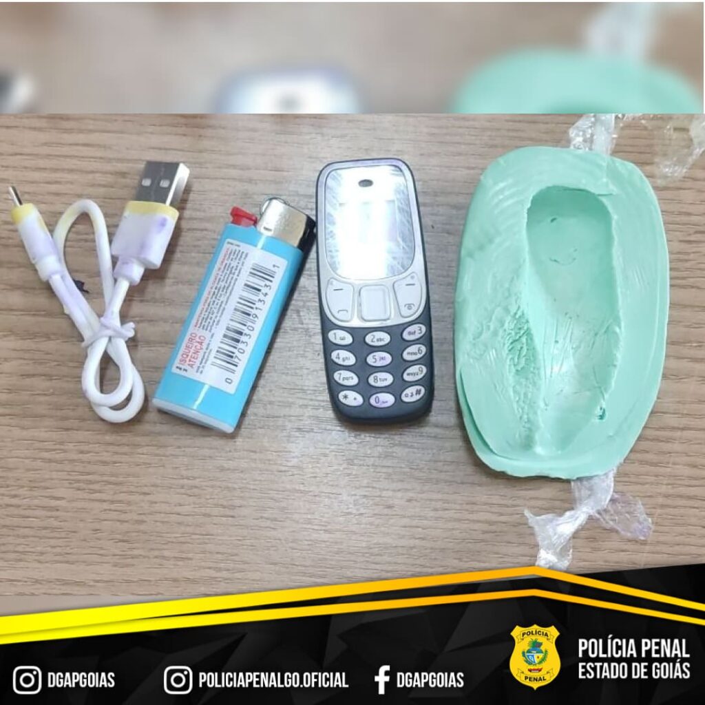 Flagrante ocorreu na Unidade Prisional Especial de Planaltina de Goiás, durante revista pessoal realizada antes do inicio do atendimento jurídico a um preso que cumpre pena por receptação. Foram encontrados um celular, um cabo USB e um isqueiro escondidos em sabonetes
