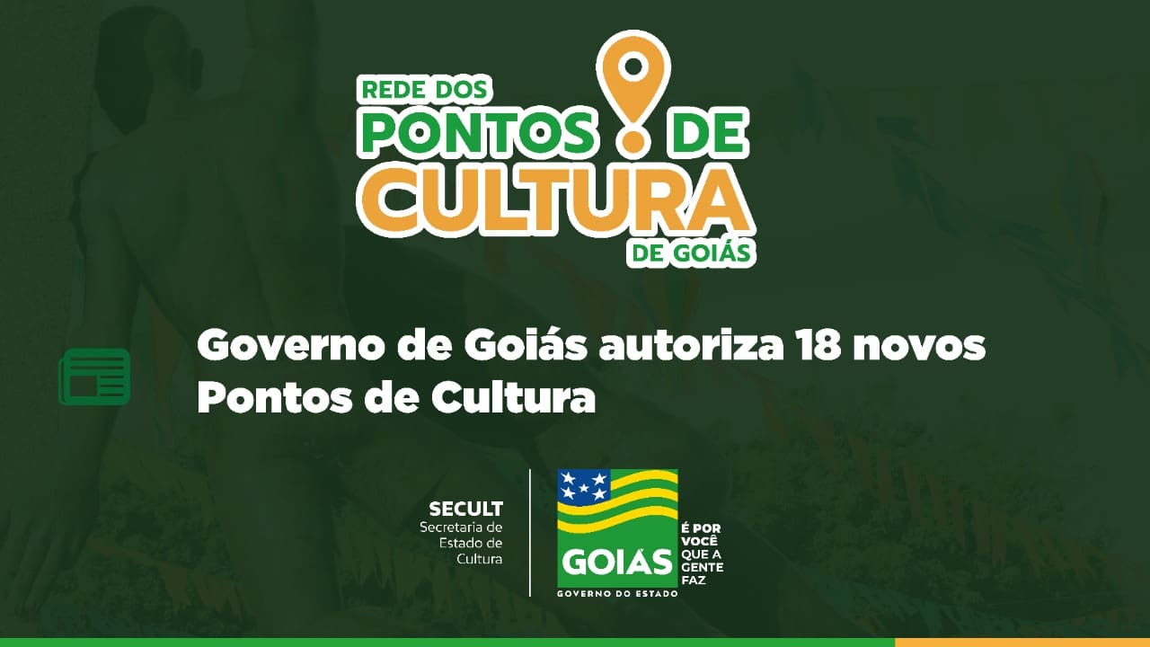 O Governo de Goiás, por meio da Secretaria de Estado de Cultura (Secult), anuncia o lançamento, para ainda neste ano, do edital que irá contemplar 18 pontos de cultura no Estado, com projetos propostos por instituições privadas sem fins lucrativos, de natureza ou finalidade cultural. A iniciativa do governador Ronaldo Caiado é mais um incentivo que visa a fortalecer a política cultural em Goiás, com promoção de ações de formação, assistência e intercâmbio, bem como de participação social.