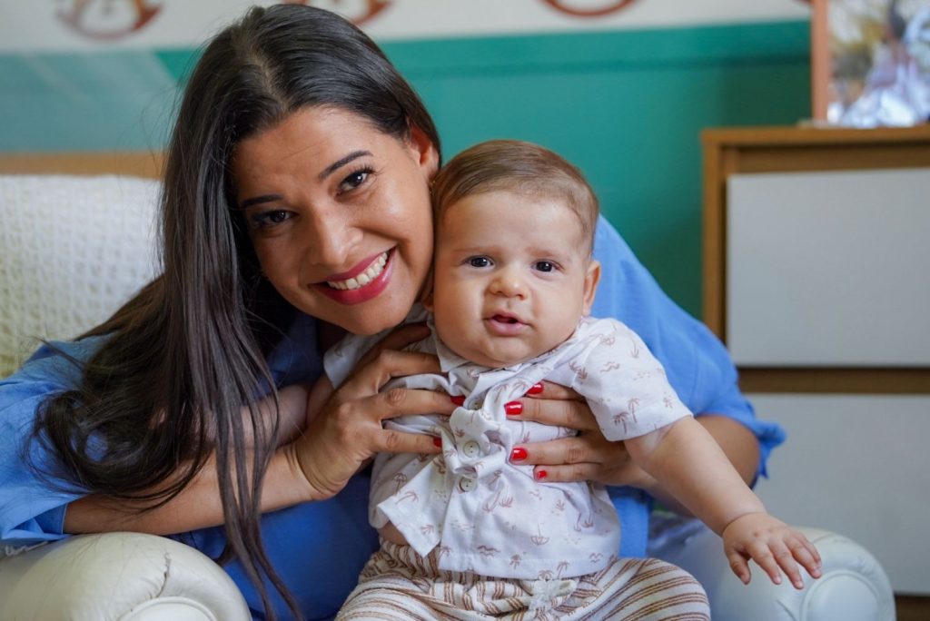 Doadora Naiara Coronel e seu filho Xavier (Foto: Iron Braz)