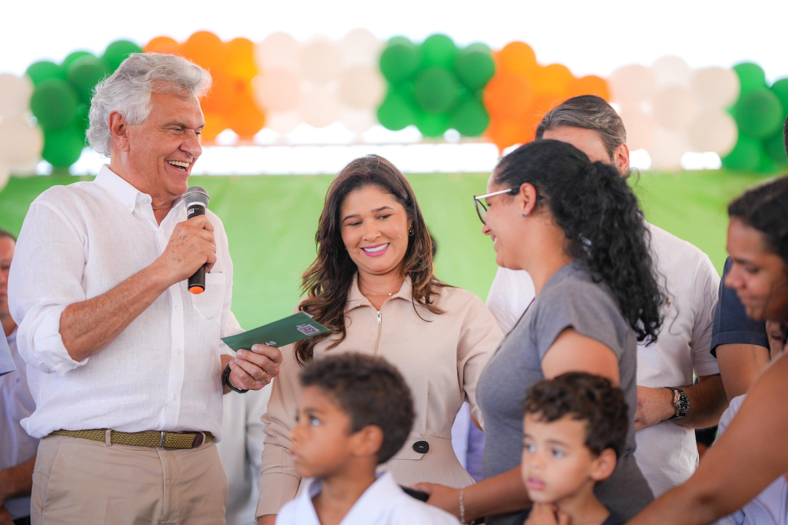 Governador Ronaldo Caiado durante entrega de 50 casas a custo zero em Cristianópolis: “As pessoas, ao olharem para essas construções, se sentem respeitadas e enxergam que o dinheiro público está sendo bem aplicado” (Foto: Júnior Guimarães)