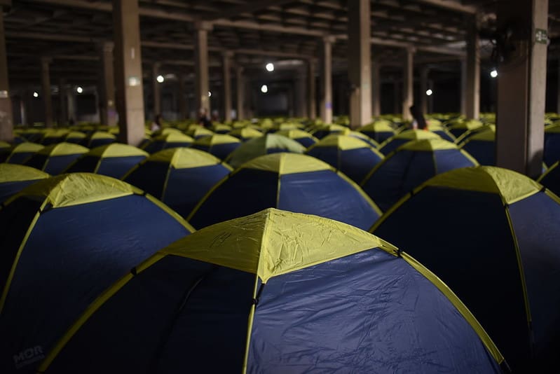 O acampamento da Campus Party oferece experiência de imersão completa para quem quer aproveitar ao máximo os quatro dias de evento. É o lugar onde os campuseiros descansam, tomam banho e dormem. Muitas vezes eles passam a madrugada acordados aproveitando a programação do evento.