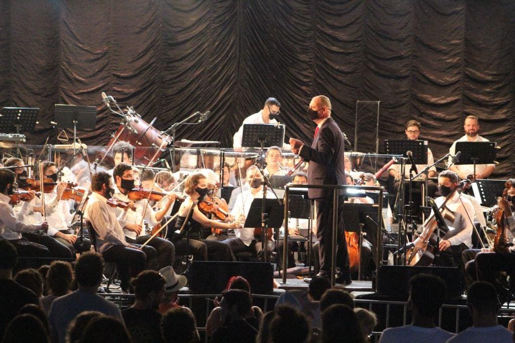 A última apresentação do Canto da Primavera 2021 foi da Orquestra Filarmônica de Goiás, neste domingo (05/12), com um concerto embalado por clássicos como Noites Goianas, Suite from Chicago, entre outras composições, sob a regência do maestro Neil Thomson. O espetáculo ocorreu no palco do Largo Beira Rio.