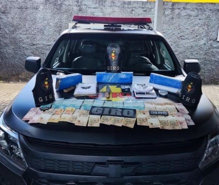 Em Goiânia, policiais militares do Grupamento de Intervenção Rápida Ostensiva (Giro) efetuaram a detenção em flagrante de um indivíduo, no Conjunto Madre Germana II, suspeito de envolvimento com o tráfico de drogas. Com ele, foram apreendidos cerca de três quilos de maconha, duas balanças de precisão, um caderno de anotações e a quantia de R$ 1.785,00 em espécie. O homem, que já possuía diversos antecedentes criminais, foi conduzido à Central Geral de Flagrantes da capital.