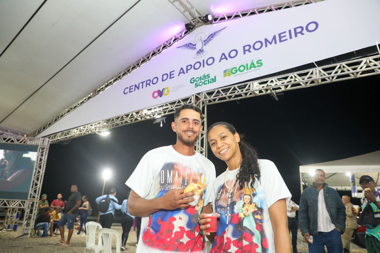 Montado no km 30 da GO-237, conhecida como Rodovia da Fé, o Centro de Apoio ao Romeiro de Muquém contou com uma equipe operacional de 83 pessoas, entre colaboradores da OVG, voluntários e bolsistas do Programa Universitário do Bem (ProBem), que ofereceram suporte aos romeiros de Nossa Senhora D’Abadia do Muquém.