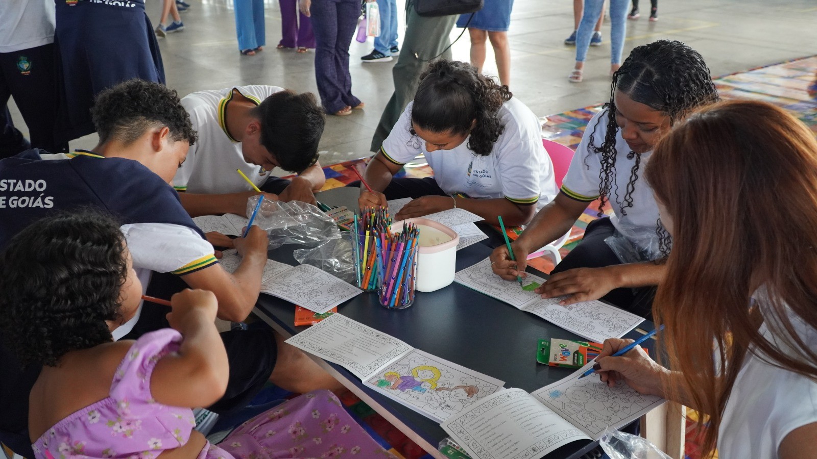 As publicações acompanham caixas de lápis de cor e apresentam a “Turminha do Bem” ao público infantil, personagens que reforçam o caráter educativo e lúdico da iniciativa.