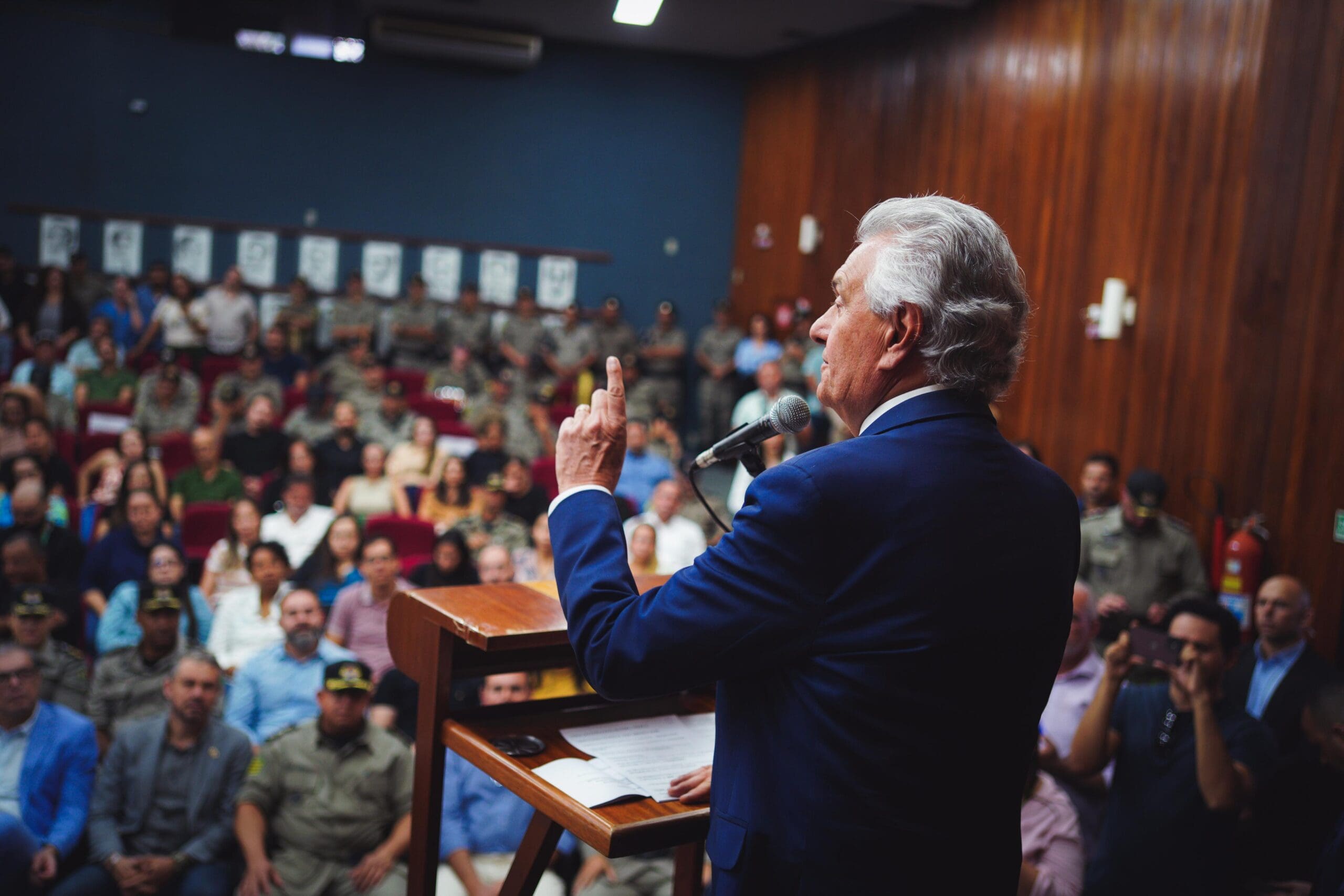 Governador Ronaldo Caiado durante evento de entrega de novas viaturas para o Comando do Policiamento Rodoviário da PMGO (Foto: Hegon Corrêa)
