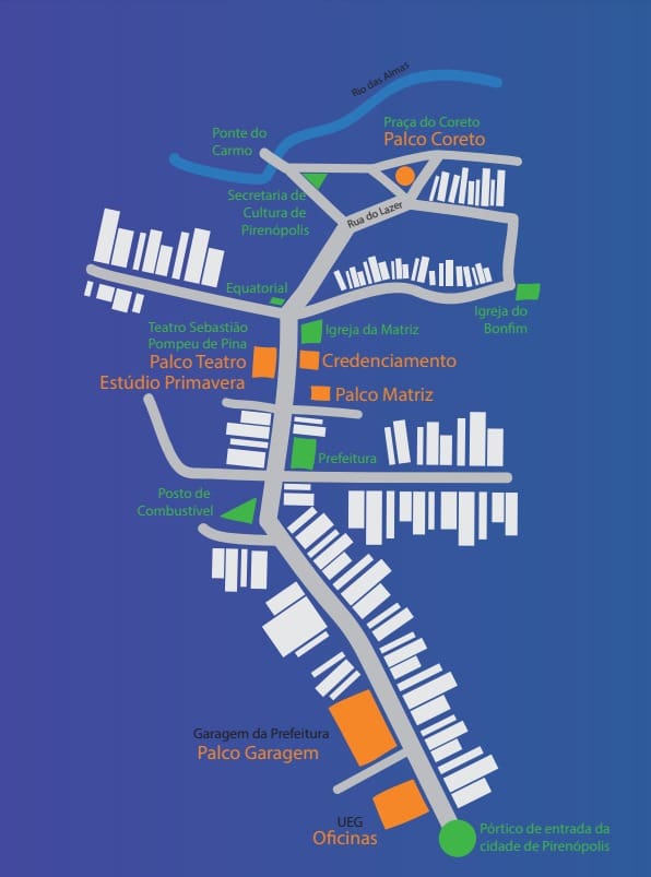 Já o palco Matriz é localizado na Praça da Matriz, no Centro de Pirenópolis. O último palco, que já é tradicional no evento, é o Palco Coreto, localizado na Praça do Coreto, também na região central do município.