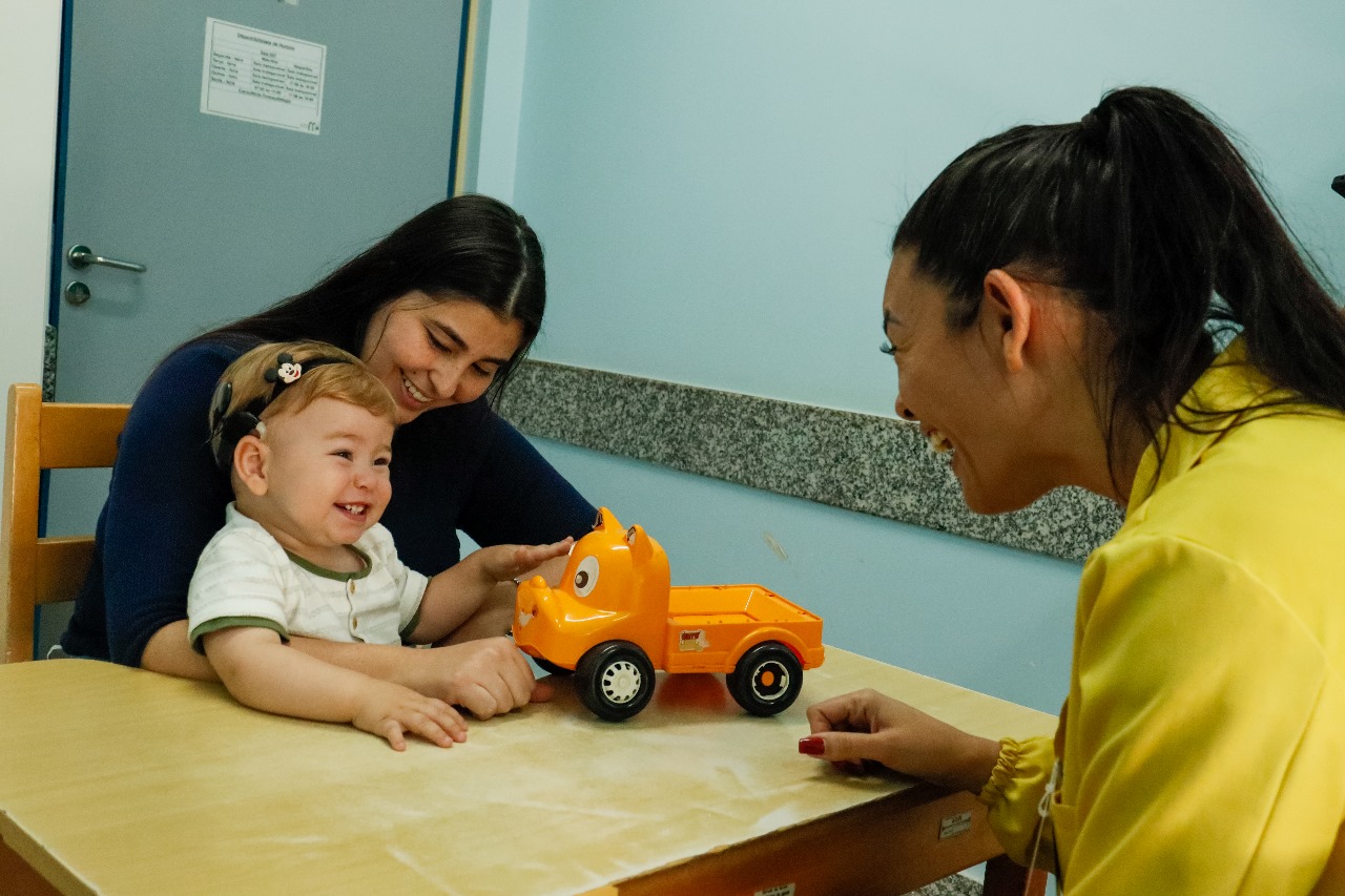 “Conseguimos fazer tudo no tempo ideal: a cirurgia antes de um ano de idade e a ativação precoce do implante. Agora iniciamos o trabalho com as habilidades auditivas e ele já responde aos sons, começa a buscar por eles. Isso tudo acontece dentro do universo lúdico da criança, em atividades que favorecem o desenvolvimento da linguagem e da fala”, ressalta.