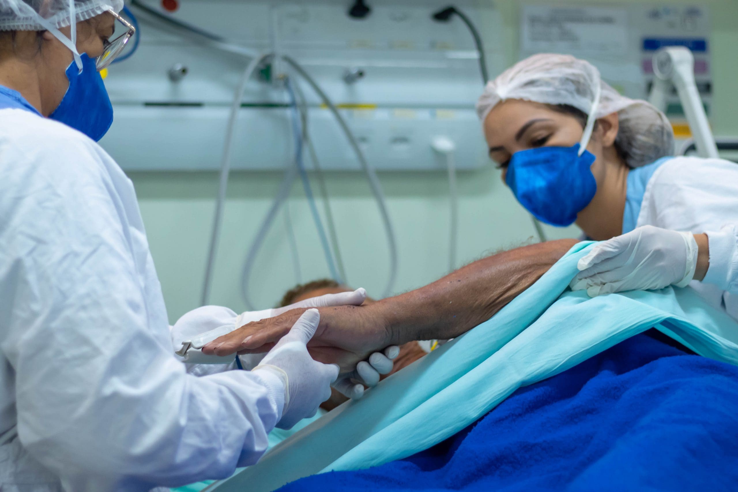 A supervisora de enfermagem da UTI do Crer, a enfermeira Juliana Caldas de Souza, tem vivenciado cotidianamente o cuidado a esses pacientes e explica sobre os desafios enfrentados. De acordo com a profissional, as LPPs passaram a se tornar recorrentes na região frontal do corpo, muito em decorrência do posicionamento ‘pronado’, conhecido popularmente como de ‘bruços’, a que os pacientes são submetidos para garantir maior conforto respiratório a esses.