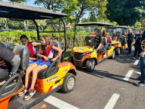 A frota da Mini Cidade conta com 6 carros elétricos (capacidade para até 4 pessoas cada, sendo um motorista (monitor) e três crianças) e 18 bicicletas infantis, de diferentes tamanhos (aros 16, 20 e 24), proporcionando experiências realistas e adaptadas às idades.