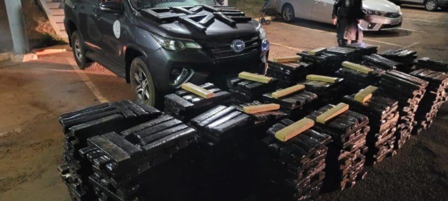 Na busca veicular, constatou-se que o veículo estava carregado de maconha, totalizando 1,5 tonelada de droga. Os bancos do carro foram retirados e a droga foi acomodada até o teto da camionete. Além da droga, a polícia encontrou roupas e pertences do suspeito no interior do veículo. Ao checar as placas, a PMGO ainda verificou que a camionete havia sido roubada em Goiânia.