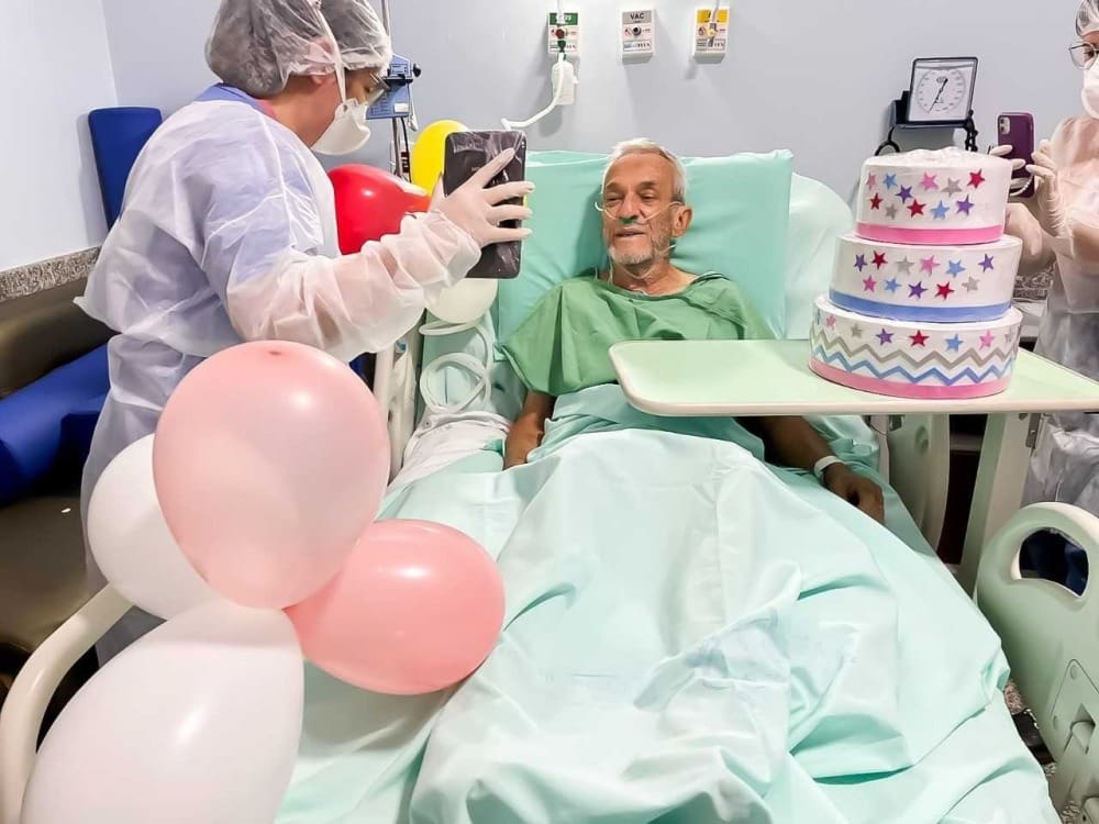 A festa surpresa teve balões, bolo decorativo, presença dos profissionais envolvidos no seu atendimento e, especialmente, uma ligação de vídeo com seus familiares no momento dos parabéns, que alegrou e emocionou o aniversariante. “Eu estou muito feliz”, disse o senhor Petrônio.