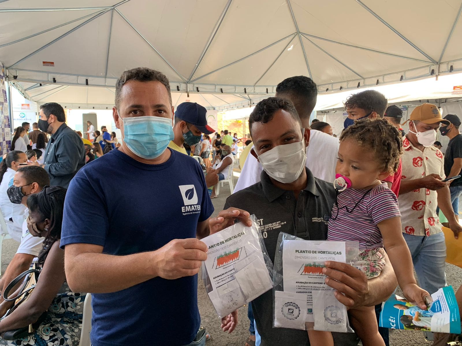 Na tenda da Emater, ficaram à disposição dos produtores os técnicos Jean Louis Martins e Joabio Neuber Oliveira. Pelo local, passaram cerca de 200 pessoas, que puderam esclarecer dúvidas sobre documentações, como a Declaração de Aptidão (DAP) ao Programa Nacional de Fortalecimento da Agricultura Familiar (Pronaf), políticas públicas de incentivo e inclusão produtiva e de que maneira receber assistência técnica. Quem esteve no estande também pôde levar para casa sementes de hortaliças, como salsa, quiabo, coentro, rabanete e cenoura.