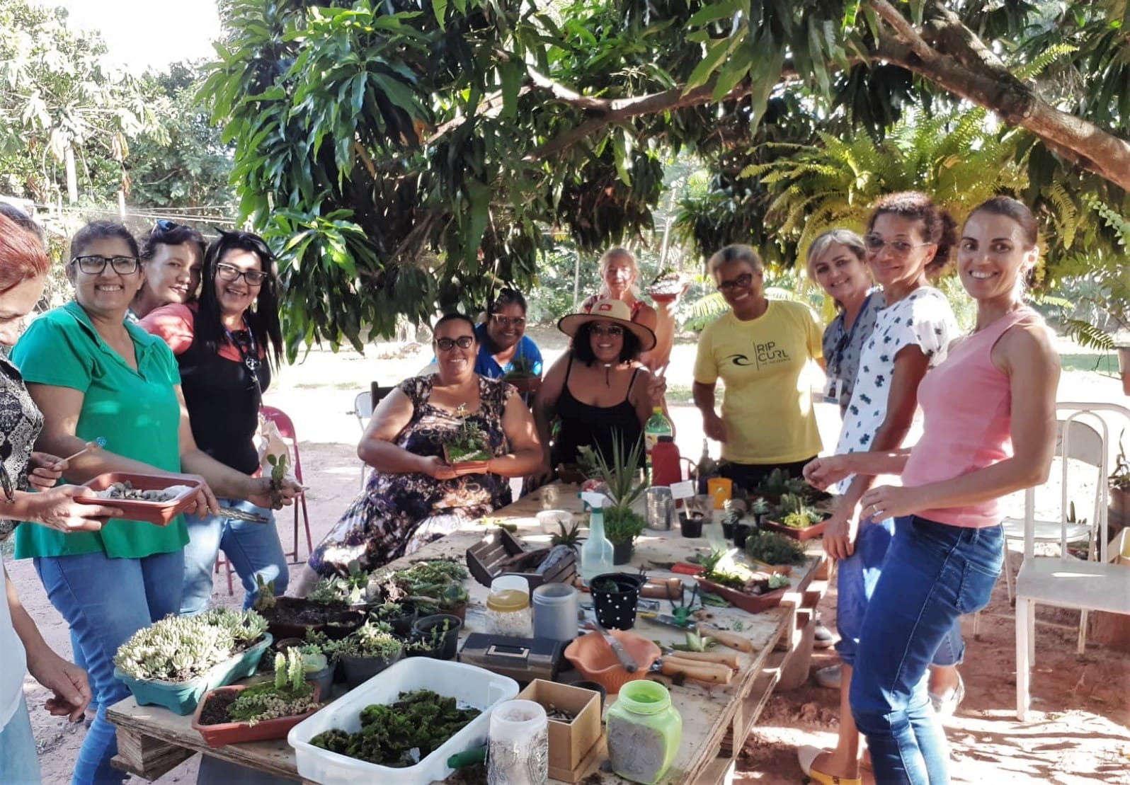 “Nós ficamos muito curiosas com esse curso, porque ainda não tínhamos feito nada nesse sentido. Participaram pessoas que gostam de plantas e jardinagem e pessoas que não têm habilidade, mas que, com o curso, isso foi despertado”, relata Alselmair Rosa do Santos, moradora do Sítio Bom Jesus, onde a formação foi realizada.