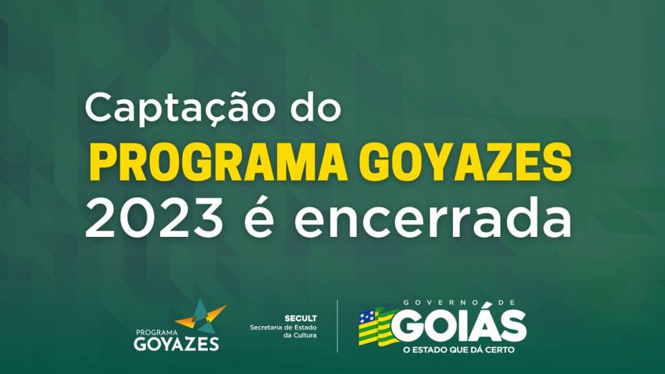 A Secretaria de Estado da Cultura (Secult) informa que foi encerrada, nesta segunda-feira (29/05), a captação de projetos do Programa Estadual de Incentivo à Cultura – Programa Goyazes. Isso porque todo o valor destinado ao programa para 2023 já foi captado pelos proponentes.