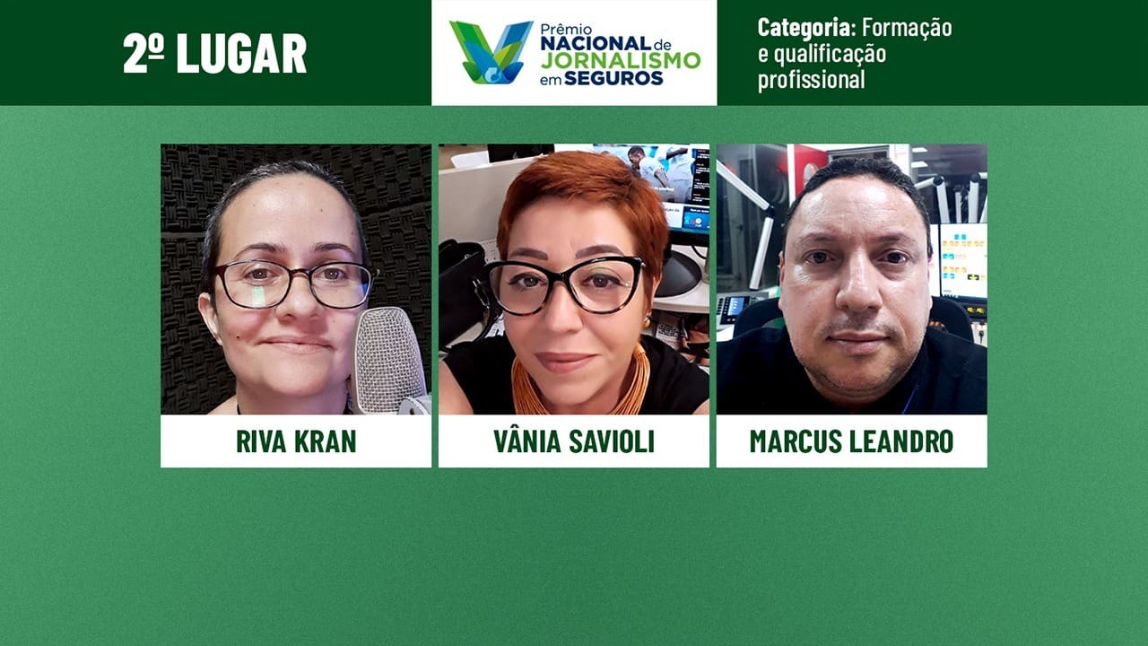 Com a reportagem ‘Pandemia muda rotina de trabalho e traz aprendizado para o setor de seguros no Brasil’ a equipe da Rádio Brasil AM, integrada pela jornalista Riva Kran, a produtora Vânia Savioli e o sonorizador Marcos Leandro Nascimento, conquistou o 2º lugar do Prêmio Nacional de Jornalismo em Seguros, organizado pela Federação Nacional dos Corretores de Seguros, na categoria Audiovisual (rádio e TV), no tema Formação e Qualificação Profissional.