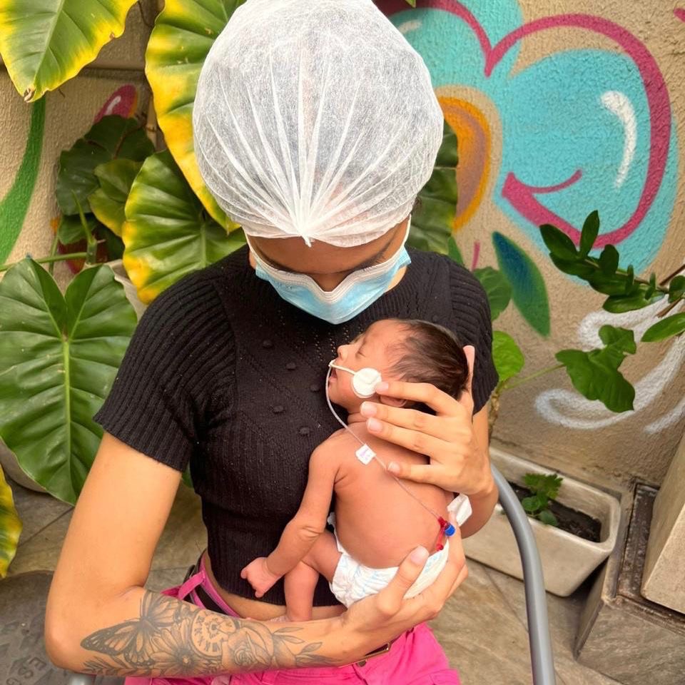 Com autorização e acompanhamento da equipe multiprofissional, o bebê foi levado até o ambiente externo para desfrutar de um momento de bem-estar junto à mãe. A ação foi conduzida pela fisioterapeuta Nathalia Karinny Maranhão de Souza Coelho.