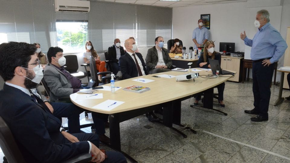 Participaram da reunião os secretários de Comunicação, Tony Carlo, Administração, Bruno D´abadia, Economia, Cristiane Schmidt, além do secretário-geral da Governadoria, Adriano Rocha Lima, e dos presidentes Diego Soares, da Goiás Parcerias, e Hipólito Prado, da Goiás Telecom.