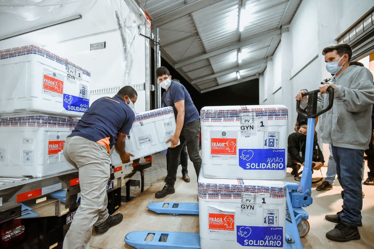 Após desembarque no Aeroporto Internacional Santa Genoveva, as doses seguirão para a Central Estadual de Rede de Frio da Secretaria de Estado da Saúde de Goiás (SES-GO).