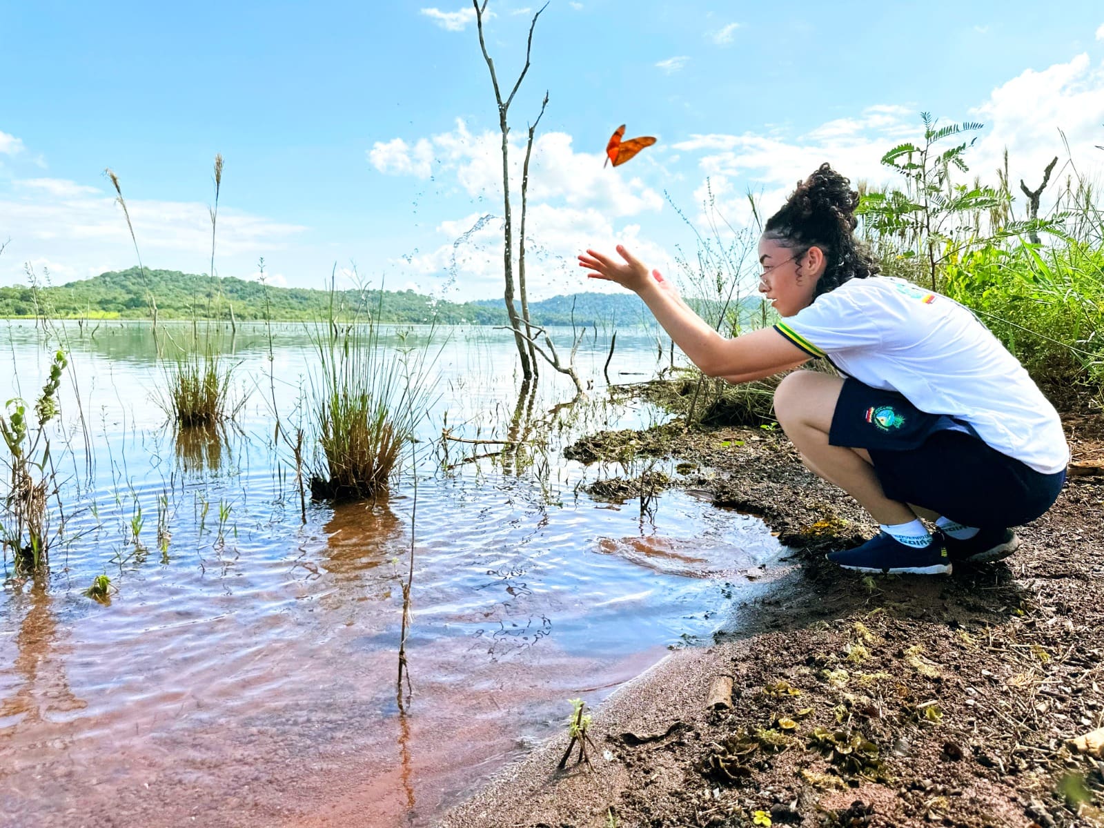 Durante a trilha imersiva, que terminou às margens do ribeirão, os alunos conheceram espécies de borboletas, fotografaram as marcas da água na mata cerratense e interagiram com o meio ambiente.